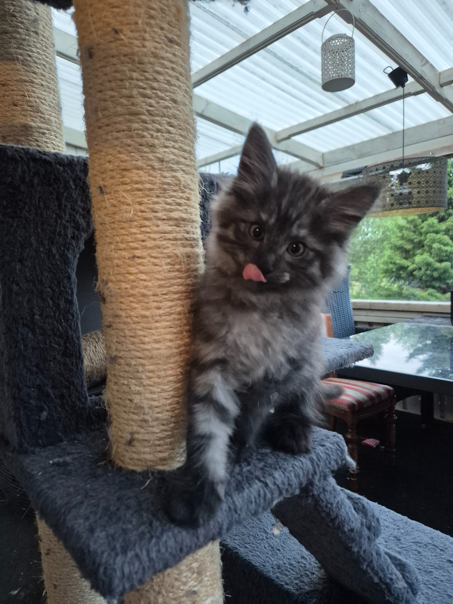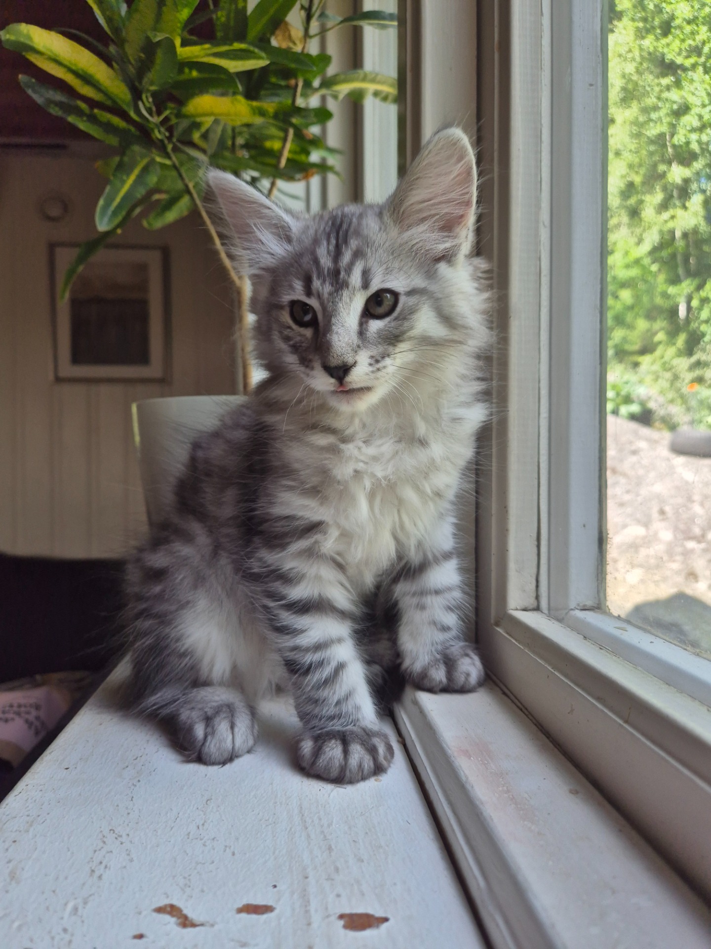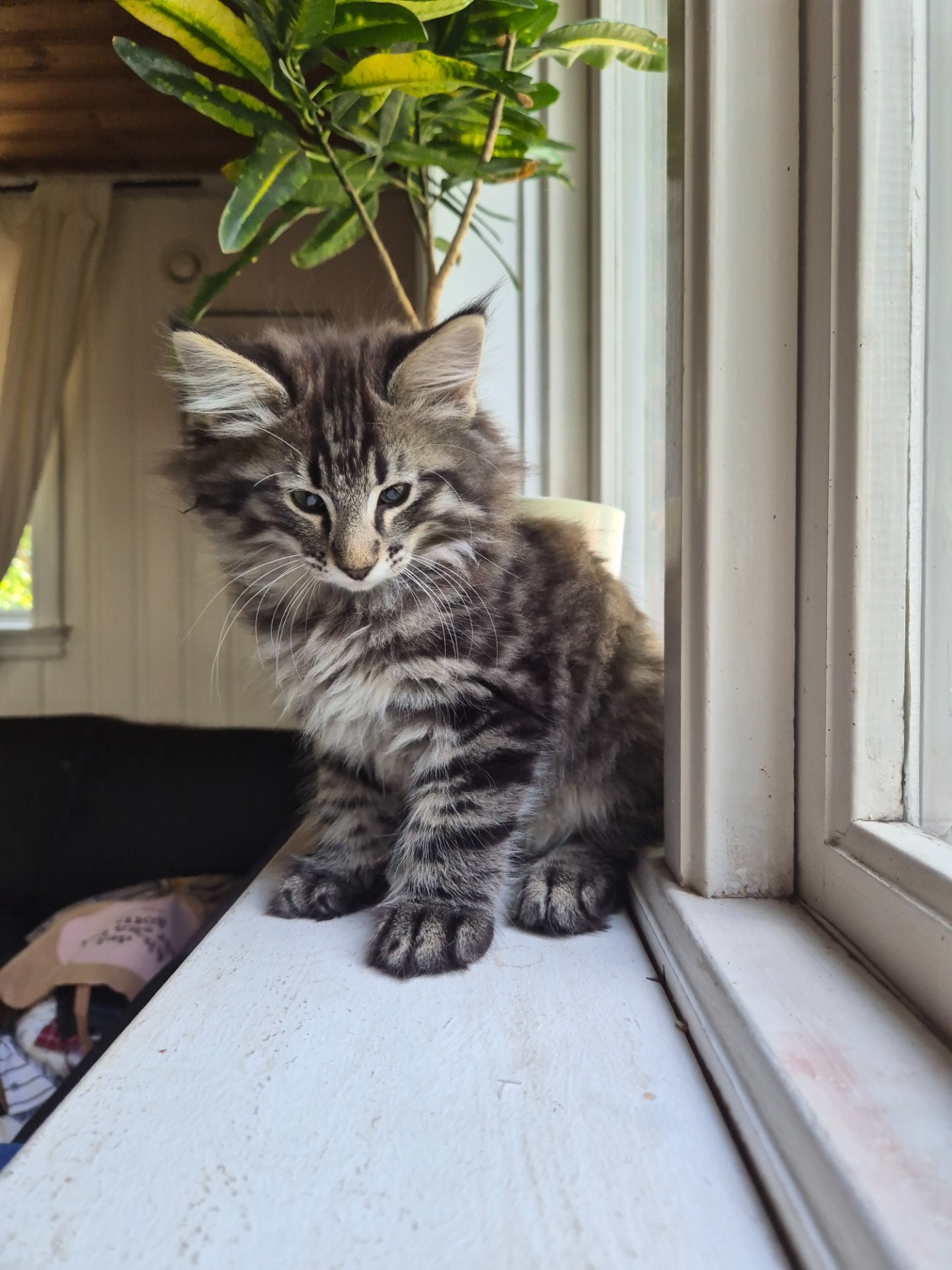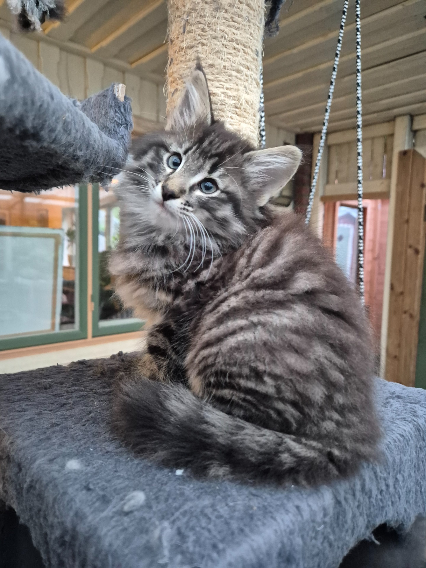 Här har vi Kexet. 🩵 (hane) NFO ns 23 09 (med reservation för förändring) På morgonen när äldsta sonen ritta in i bolådan så sa han "men mamma, det är inte fyra kattungar här, det är fem!" han var vår lilla överraskning. :)